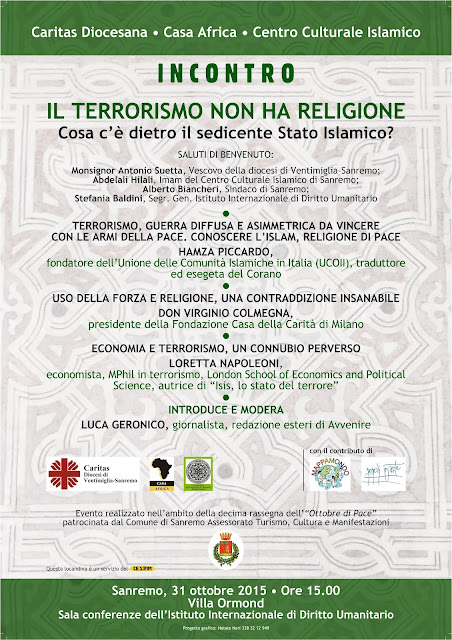 15.00. Per ‘Ottobre di Pace 2015’, ‘Il terrorismo non ha religione. Cosa c’è dietro il sedicente Stato Islamico?’: