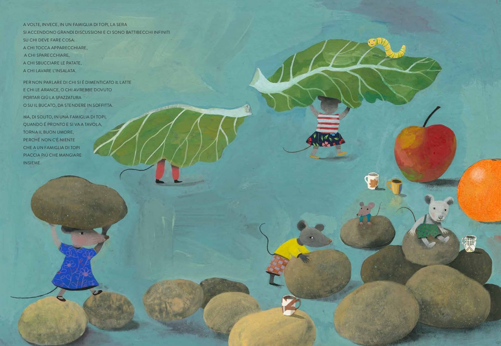 Ma a me sembra una nuova impaginazione – tra l’altro molto bella: quel gattino arricciato non lo ricordavo! – ed anche quella scenetta della famiglia topa nella sua normalità! Ad esempio, non sapevo amassero le arance, al massimo le bucce dì arancio un po’ ammuffite…….