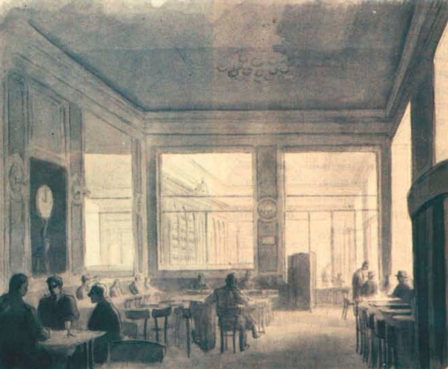 Affresco scomparso di Fabio Cipolla nel Caffè Aragno |