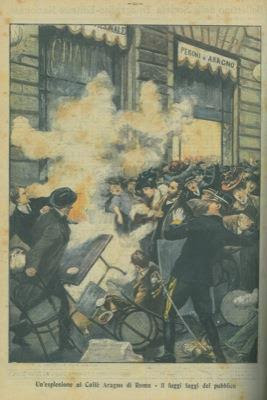 Il 14 novembre nel 1906 scoppiò una bomba all’esterno del Caffè Aragno, l’attentato aveva una matrice anarchica, per fortuna non ci furono né morti né feriti gravi.